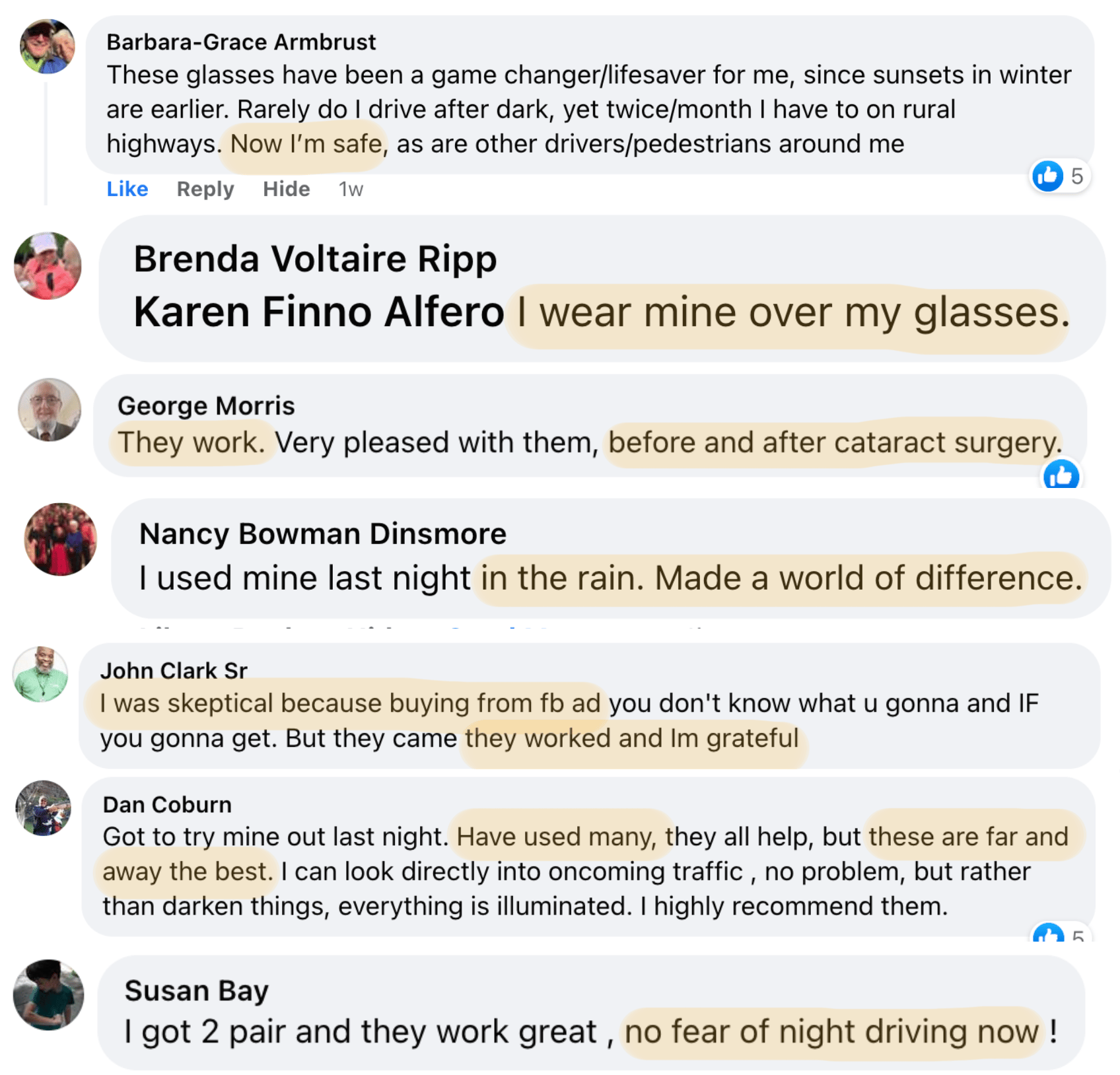 If you don't feel safe driving at night or are not 100% happy for any reason after wearing Headlight Glasses with GlareCut Technologyâ¢, please let us know: support@purexlife.com